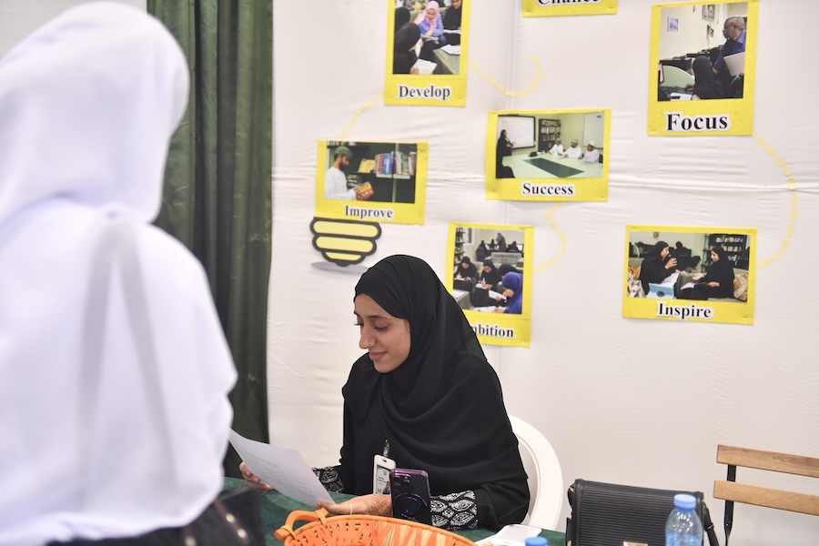 Alya Al-Shibli, studying Speech and Language Pathology, introduced visitors to her field and its role in training specialists. Mohammed Al-Mamari from Al-Khalil bin Ahmed Al-Farahidi Center showcased the center’s departments and its contributions to humanitarian research, while Al-Ayham Al-Rashdi, a Nursing student, highlighted the Success