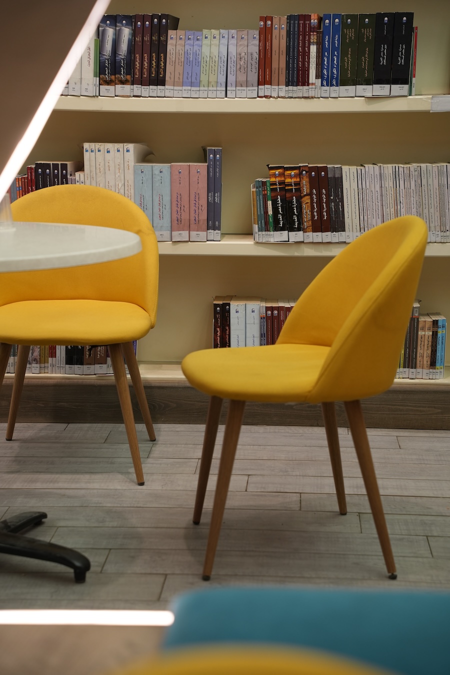 المبنى ذاته يكتب لغته الخاصة؛ تصميمه يجمع بين الرحابة والحميمية، حيث تتوزع القاعات بانسيابية، وتطل النوافذ على مساحة خارجية خضراء تُغري بالقراءة الصامتة أو النقاش الهادئ. إلى جانب الضوء الطبيعي، وترتيب الرفوف، وأماكن الجلوس، كلها عناصر مدروسة بعين جمالية، تجعل من المطالعة والقراءة تجربة حسية، لا مجرد فعل ذهني. في (نُ السحّار)، لا تُقرأ الكتب على عجل، بل تُمنح وقتها، كما لو أن المكان يعلّمك فضيلة التمهّل.