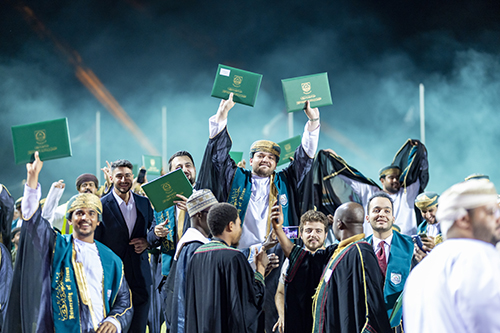 <p style="text-align: justify;" dir="rtl"><span style="font-size: xx-large; font-family: arial, helvetica, sans-serif;">احتفلت جامعة نزوى بتخريج 1578 من طلبة الدفعة الثامنة عشر؛ وذلك تحت رعاية معالي السيد إبراهيم بن سعيد بن إبراهيم البوسعيدي، وزير التراث والسياحة، وبحضور عدد من أصحاب السعادة أعضاء مجلسي الدولة والشورى، وضيوف الجامعة من المسؤولين وأولياء الأمور والمدعوين.</span></p>